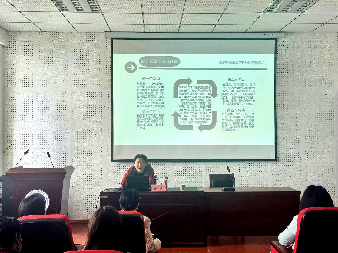 讲座中,张犇教授首先从项目总量、比例构成、研究亮点等多个维度介绍了我国国家社会科学基金项目艺术学项目的发展轨迹,然后细致地剖析了1979-1999、2000-2010、2011-2023三个时期的艺术研究选题特点,最后结合案例阐述了选题的方法和技巧,他特别指出在选题时要把握以下三点,一是要开拓创新,即选题提出的是前人未曾研究或很少研究的问题;二是选题要意义重大,即选题在理论上或实践上有重要的研究价值;三是选题要重点突出,利于深入,要有高度。