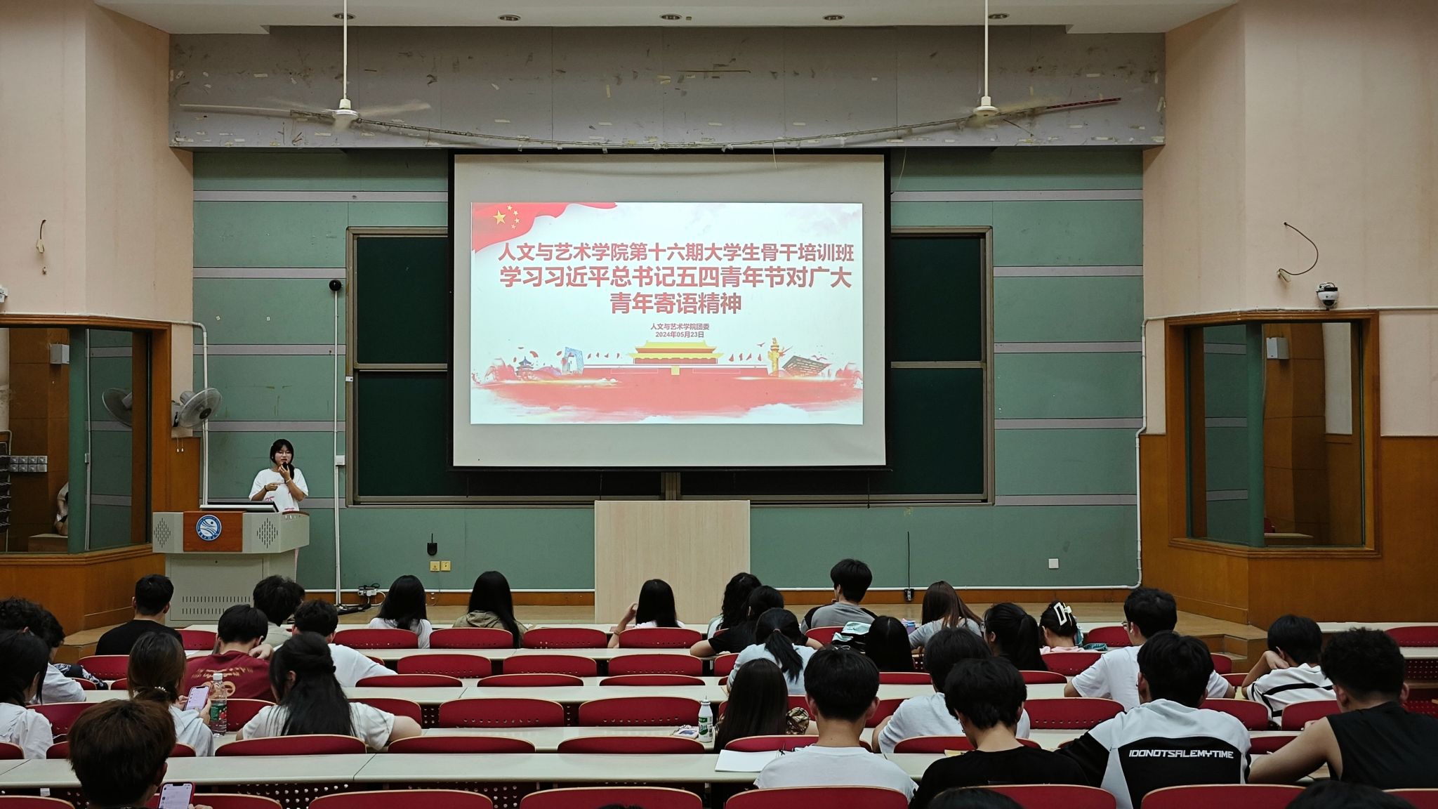 为深入贯彻落实习近平总书记对广大青年的寄语精神,人文与艺术学院于5月23日在北教学楼开展学习习近平总书记五四青年节对广大青年寄语精神的座谈会。此次座谈会旨在传达总书记对青年一代的关心关怀,激励广大青年坚定理想信念,为实现中华民族伟大复兴的中国梦贡献青春力量。会议由院分团委学生副书记赵文敏主持,120余名学生干部参与。