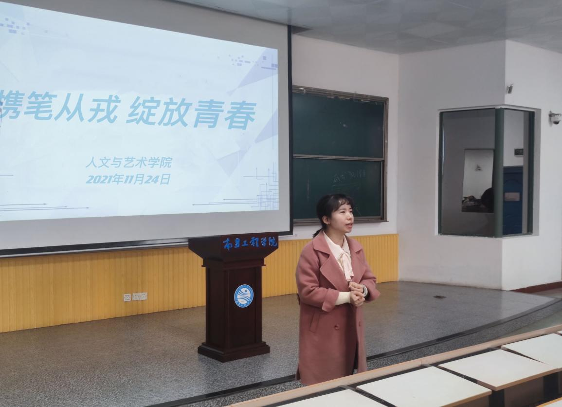 人文与艺术学院开展榜样的力量之“携笔从戎,绽放青春”2022届毕业生征兵宣传会