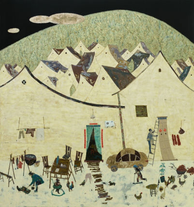 (漆画 张明远 《国泰民安》160cmх150cm)