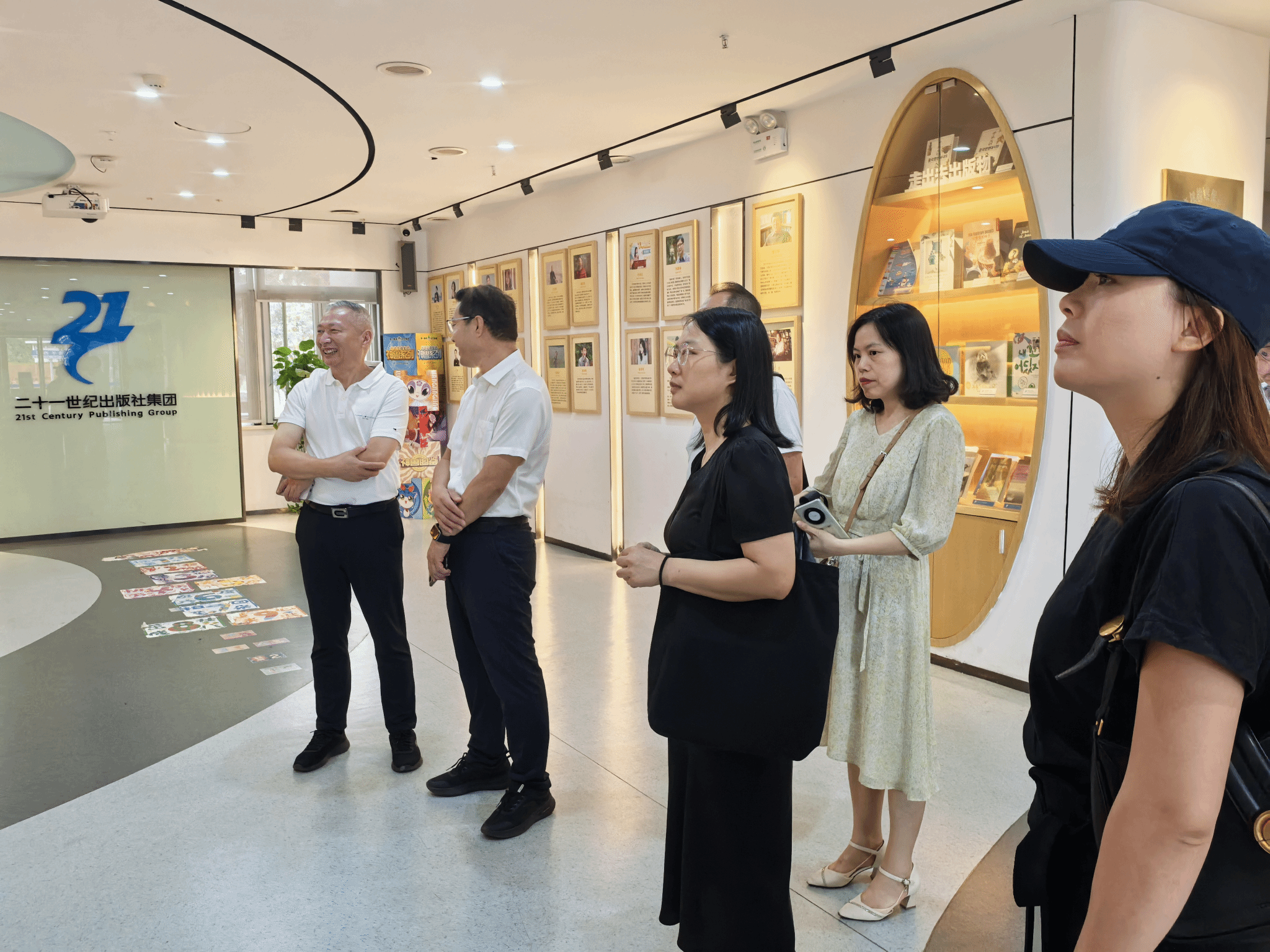 在吴晓峰副社长的陪同下,张记刚一行参观了二十一世纪出版社集团出版中心。吴晓峰详细介绍了集团的发展历程、核心业务,以及连续九年稳居中国少儿图书出版领域首位的卓越成绩。