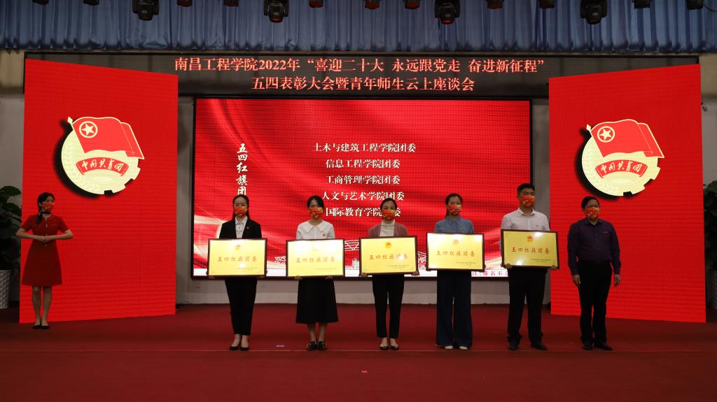 在五四青年节来临之际,南昌工程学院团委于5月4日在大学生活动中心开展2022年“喜迎二十大 永远跟党走 奋进新征程”五四表彰大会暨青年师生云上座谈会,此次大会公布了2021—2022学年“五四”先进集体和进个人表彰结果,并对获奖集体和个人进行颁奖,人文与艺术学院在此次评优评先活动中获得了多项表彰。