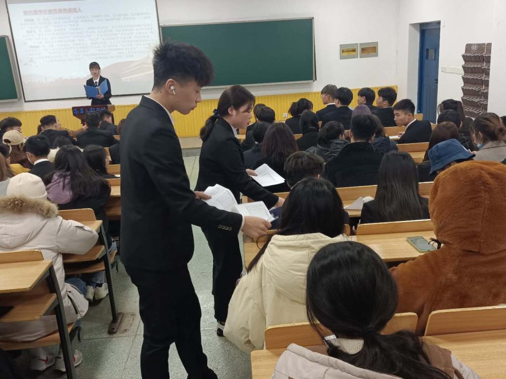 大会在全体人员合唱的国歌声中拉开帷幕。丁蓓蒂致开幕词,她强调各级学生会组织成员要在未来的工作中始终坚持正确的政治方向,坚持学生主体地位同时,各级学生干部还要始终贯彻全心全意为同学服务的宗旨,团结带领广大同学书写更加壮丽的青春篇章。随后,分团委学生副书记金思琪宣读此次大会代表资格审查小组名单,计票、监票小组人员名单和代表资格审查报告。第三届团委委员及第九届学生委员会委员审议报告并顺利通过。之后,进入发放选票的环节,全体学生对候选人进行无记名投票并由工作人员进行计票工作。