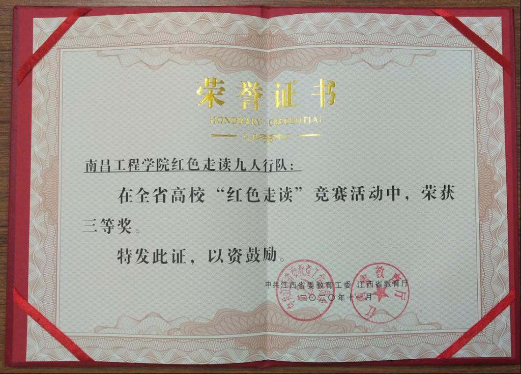 我院共动员150余支队伍参加“红色走读”竞赛活动,其中9支队伍入围省赛,国庆期间前往南昌、井冈山、景德镇等地开展线下实地走读。最终“红色走读九人行”队伍脱颖而出,荣获省级三等奖。(文/图 吴凯嘉)