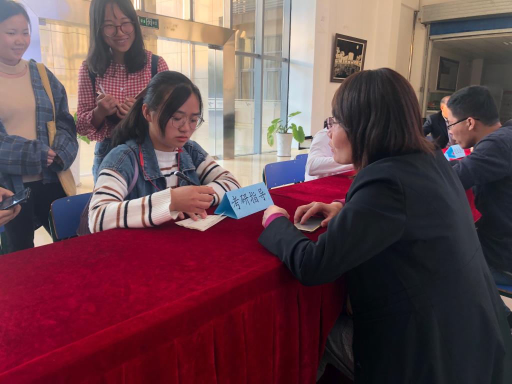 在咨询服务活动过程中,学院党委领导班子分别从就业创业、考研考公务员、“三支一扶”、毕业预警等方面对毕业生进行一对一答疑解惑。希望同学们明确目标、坚定信念,以积极乐观的心态备战考研,认清就业创业的整体形势,积极主动就业、自信大胆创业,鼓励同学们扎根基层、甘于奉献,到祖国最需要的地方发光发热,并对学校毕业预警和取消清考的相关制度作了说明。此次毕业生咨询服务日活动吸引了不少毕业生前来咨询,现场活动气氛热烈,通过此次活动,同学们明确了自我定位,找准了就业方向。(文/丁蓓蒂 马羽欣 图/马羽欣 )