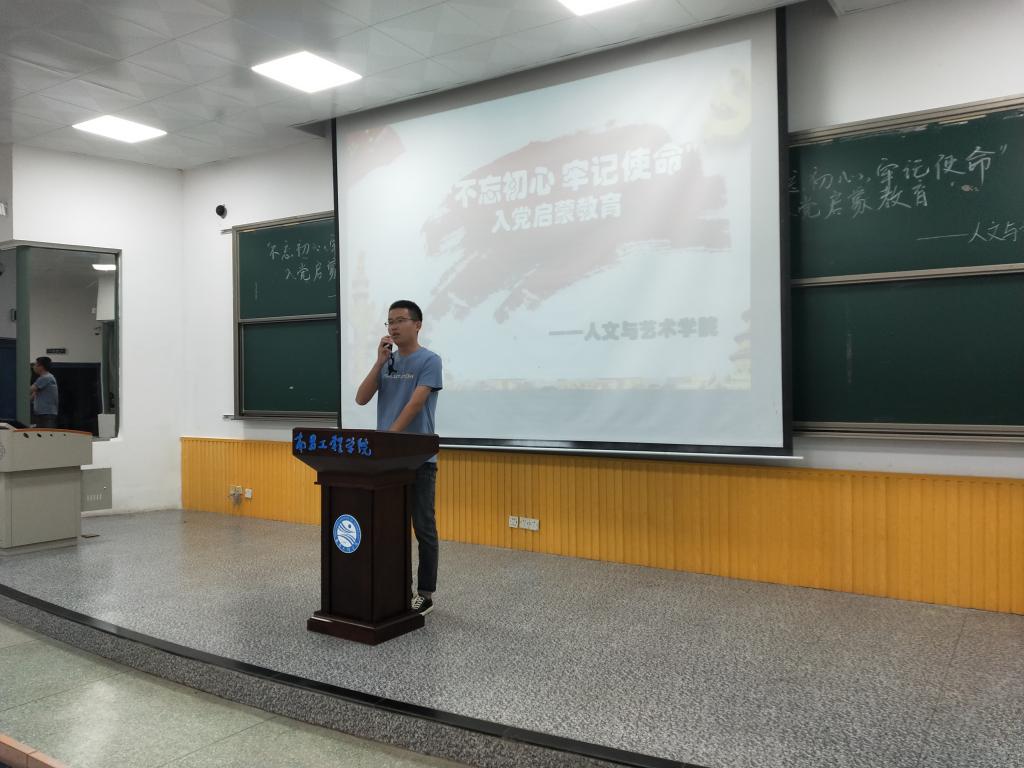 9月23日晚7:00,人文与艺术学院于南教学楼c105开展“不忘初心、牢记使命”2019级新生入党启蒙教育讲座。讲座旨在让新生更好地学习党的基本章程,了解入党条件和入党程序,鼓励新生积极地向党组织靠拢。人文与艺术学院组织员、第一学生党支部书记丁蓓蒂,副书记陶勇,党员代表校教官队副团长薛珂珂,各学生党支部委员代表及19级全体新生参加了讲座。