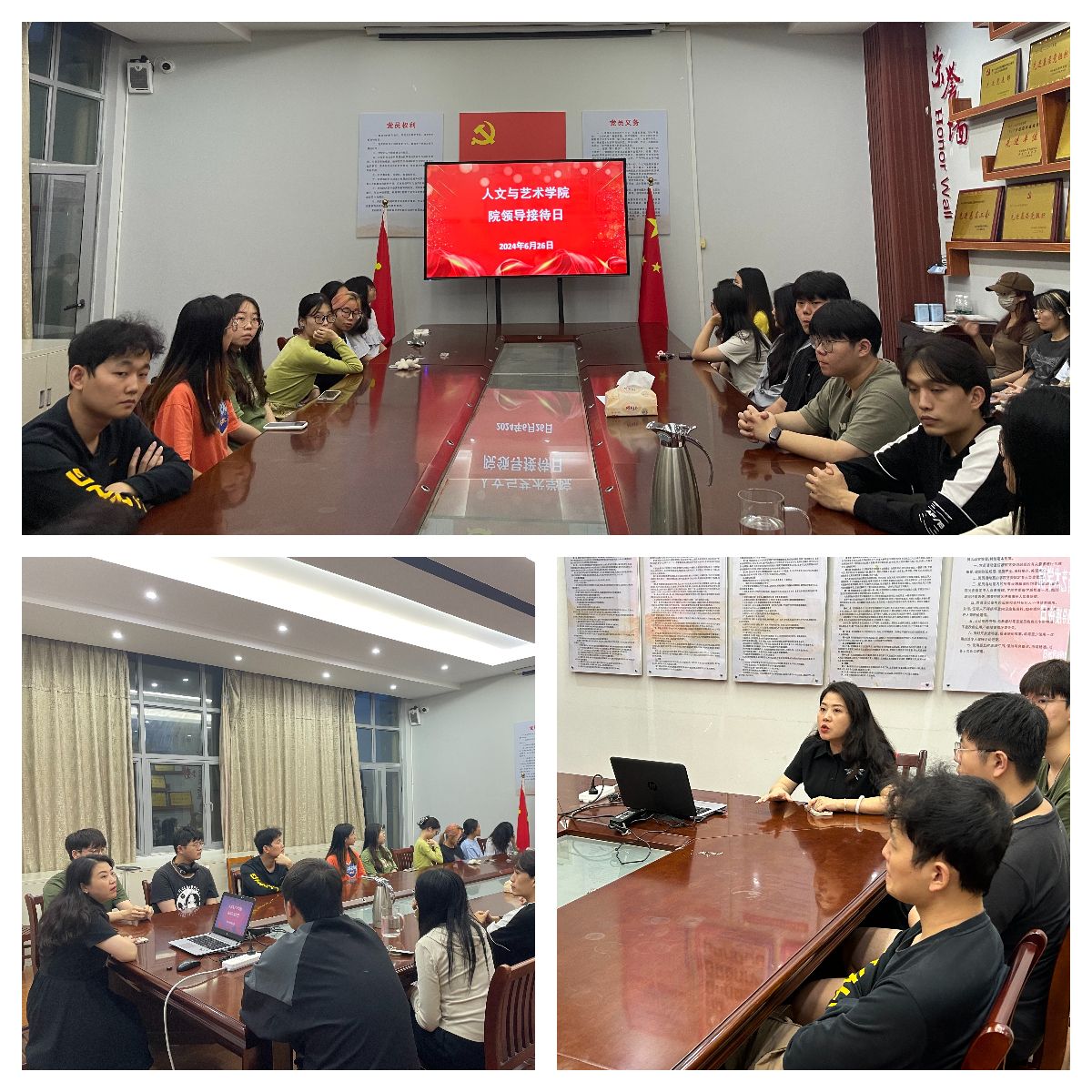 6月26日晚7点,人文与艺术学院在艺术楼A231会议室举办院领导接待日活动,活动吸引了学生踊跃参与,学院院长万芬芬、教学秘书和辅导员代表参加接待日活动。
