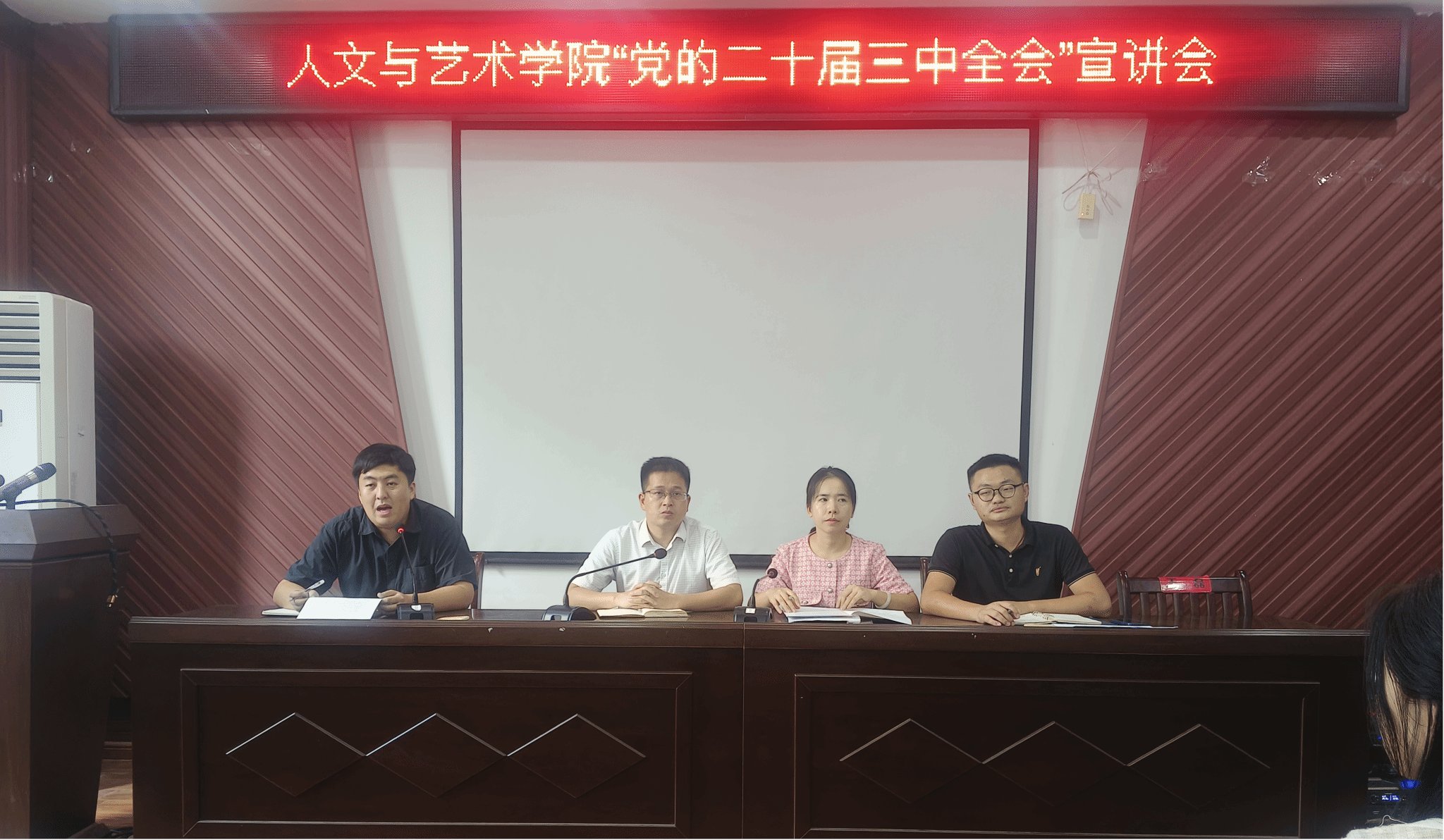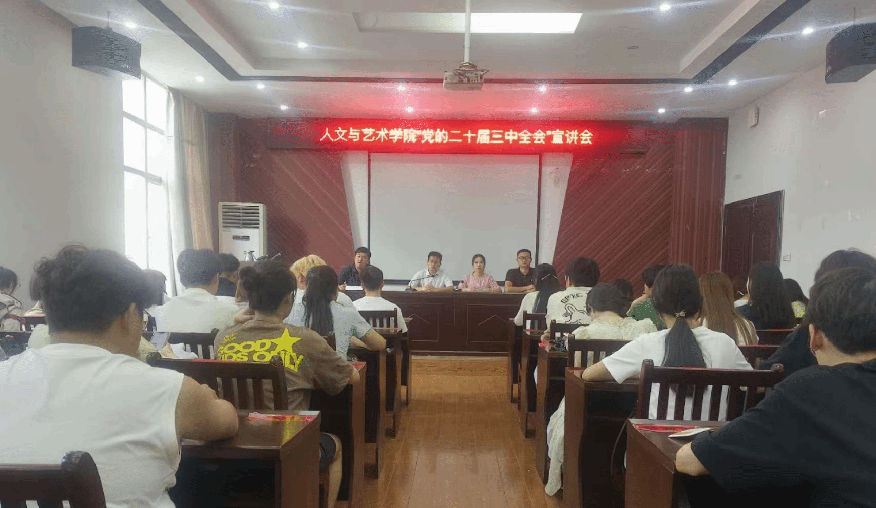 为深入贯彻党的二十届三中全会精神,进一步加强青年思想政治建设。9月27日人文与艺术学院于艺术楼A230召开了党的二十届三中全会精神宣讲会,会议由辅导员马浩哲主持,学院党委副书记黄海平,学院团委书记丁蓓蒂,组织员蒿佳杭,辅导员兰龙焱,21-24级全体学生干部参与。