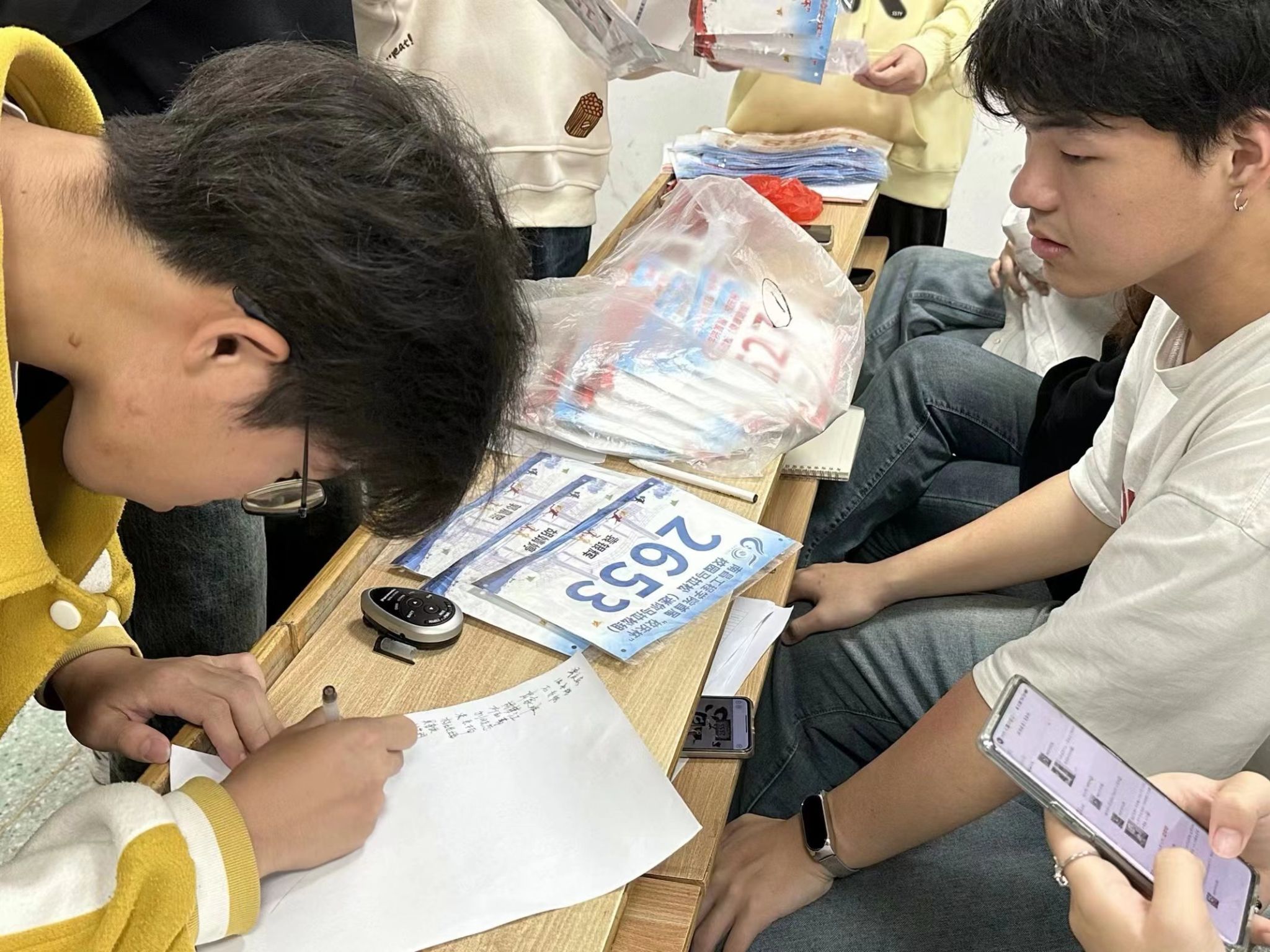 最后,文体部工作人员为参赛运动员们发放参赛号码牌,并督促他们签下安全承诺书。