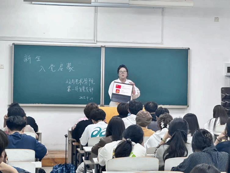 为落实学校关于新生入学教育工作要求,引导广大青年坚定理想信念、了解党的基本知识、明确入党流程,9月22日晚,人文与艺术学院各学生党支部以进班级宣讲的形式开展2025级新生入党启蒙教育。