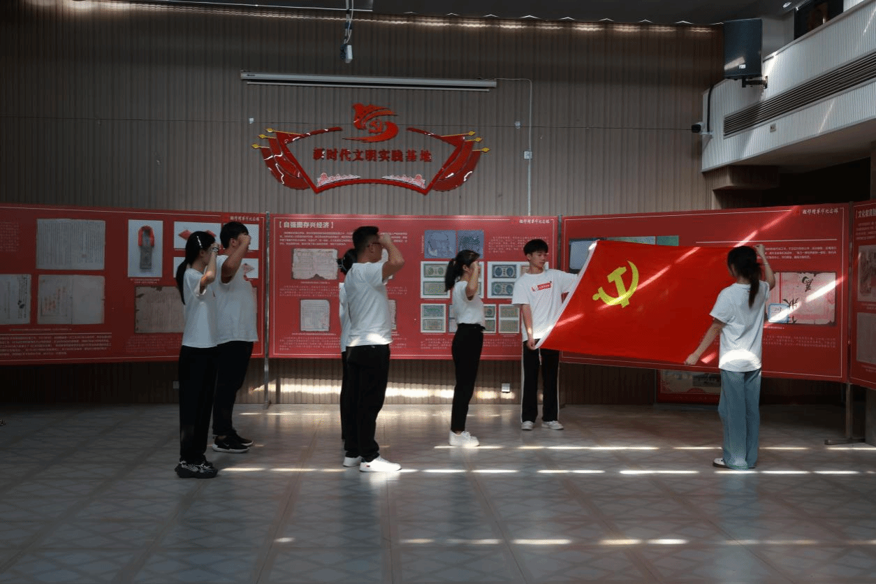 在讲解员的带领下,师生党员走进万载县湘鄂赣革命纪念馆,聆听先辈的革命故事,驻足观看一幅幅历史图片、一件件展陈文物,重温那段可歌可泣的恢弘历史和英勇抗战的烽火岁月,接受了一场生动的党史和革命传统教育。期间,他们还将专业优势与红色资源充分结合,以拍摄红色走读视频的方式追寻革命足迹,传承红色基因。参观结束后,师生党员来到纪念馆的新时代文明实践中心,整齐列队,面向鲜红的党旗重温了入党誓词。